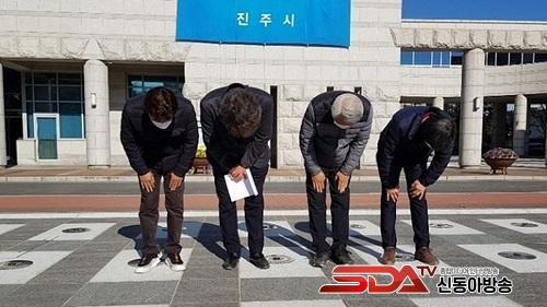 ÁøÁÖ ÀÌ¡¤ÅëÀå ÇùÀÇȸ ´ëÇ¥ 4¸íÀº À̳¯ ÁøÁÖ½Ãû ¾Õ¿¡¼­ ±âÀÚȸ°ßÀ» ¿­°í "Á¦ÁÖµµ ´Üü ¿¬¼ö·Î ÀÎÇÑ Äڷγª19 Áý´Ü°¨¿°°ú È®»êÀ¸·Î ÁøÁֽùΰú Á¦ÁÖµµ¹Î ¿©·¯ºÐ, ±¹¹Î ¿©·¯ºÐ²² ¸Ó¸® ¼÷¿© »çÁËÇÑ´Ù"°í ¸»Çß½À´Ï´Ù.