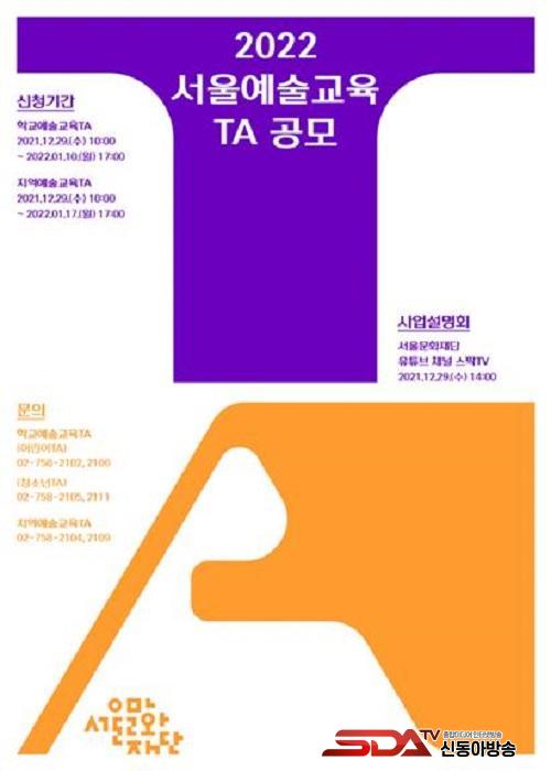 [½Åµ¿¾Æ¹æ¼Û´º½º=Á¤ÁöÀ± ±âÀÚ] ¼­¿ï¹®È­Àç´Ü(´ëÇ¥ÀÌ»ç ÀÌâ±â)Àº ¼­¿ï½Ã³» Çб³¿Í Áö¿ª °ÅÁ¡ Ű¿ò¼¾ÅÍ µî¿¡¼­ ¿¹¼ú ¼ö¾÷À» ÁøÇàÇÒ ±³À°¿¹¼ú°¡(Teaching Artist, TA)¿Í ±³À°´Üü¸¦ ¼±¹ßÇÏ´Â 2022³â ¼­¿ï¿¹¼ú±³À°»ç¾÷ °ø¸ð¸¦ 27ÀÏ(¿ù)ºÎÅÍ ³»³â 2¿ù 16ÀÏ(¼ö)±îÁö ÁøÇàÇÑ´Ù°í ¸»Çß½À´Ï´Ù.