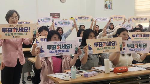 À̳¯ ±³À° Âü°¡ÀÚµéÀº ¡°ÅõÇ¥·Î ´ëÅë·ÉÀ» ¼±ÃâÇÏ´Â ´ëÇѹα¹ÀÇ ¿ª»ç¸¦ Á÷Á¢ µè°í üÇèÇÏ¸é¼ ¹ÎÁÖÁÖÀÇÀÇ Àǹ̸¦ µÇ»õ±â´Â ½Ã°£ÀÌ µÆ´Ù¡±¸ç ¡°¿ì¸® ¾ÆÀ̵鿡°Ôµµ ¹ÎÁֽùÎÀ¸·Î¼ ÅõÇ¥ÀÇ Á߿伺À» Àü´ÞÇØÁÖ°Ú´Ù¡±°í ¸»Çß´Ù.
