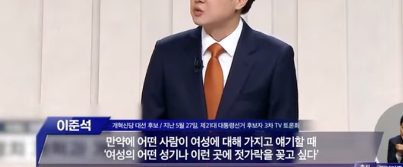 27ÀÏ ¼¼¹øÂ° ´ë¼±Èĺ¸ TVÅä·Ð¿¡¼ ¡®½Ã²ô·¯ Àθ¶ ÀÌÁؼ®¡¯Àº ±Ç¿µ±¹ ¹ÎÁֳ뵿´ç ´ë¼± Èĺ¸¿¡°Ô "¹Î³ë´ç ±âÁØÀ¸·Î, ¸¸¾à ¾î¶² »ç¶÷ÀÌ '¿©¼ºÀÇ ¼º±â³ª ÀÌ·± °÷¿¡ Á£°¡¶ôÀ» ²È°í ½Í´Ù'°í ÇÏ¸é ¿©¼º Çø¿À¿¡ ÇØ´çÇϳª"¶ó¸ç, ÀÌÀç¸í Èĺ¸ÀÇ ¾ÆµéÀÌ ÀÎÅͳݿ¡ ¿Ã¸° °ÍÀ¸·Î ¡®ÃßÁ¤¡®µÇ´Â Áú¹®À» ÇßÀ¸³ª, ÀÌ¿¡ ±Ç È帴 "Áú¹®ÀÇ ÃëÁö¸¦ ¸ð¸£°Ú´Ù"¸ç "´äº¯ÇÏÁö ¾Ê°Ú´Ù"°í ÇÏ¸é¼ ¿ø»öÀû Áú¹®À» ±×¸¸ Ç϶ó´Â ÃëÁö·Î ¸»ÇßÀ¸³ª, ¡®½Ã²ô·¯ Àθ¶ ÀÌÁؼ®¡¯Àº ÀÌÀç¸í Èĺ¸¿¡°Ô±îÁö Áý¿äÇÏ°Ô Áú¹®À» ÀÌ¾î ³ª°¬´Ù.