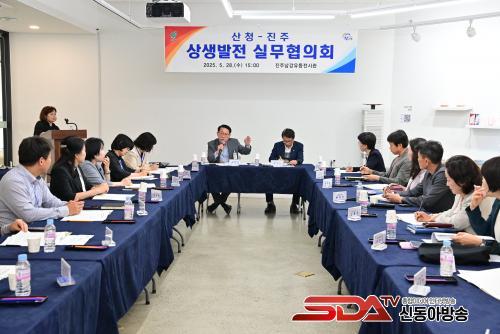 À̳¯ ȸÀǸ¦ ÁÖÀçÇÑ ÁøÁֽà ±âȹÇàÁ¤±¹ÀåÀº ¡°»ó»ý¹ßÀü ½Ç¹«ÇùÀÇȸ´Â ´Ü¼øÇÑ ÇàÁ¤ÇùÀÇȸ Â÷¿øÀ» ³Ñ¾î ¾ç ½Ã±ºÀÇ ¼ÒÅë°ú È­ÇÕÀÇ °¡±³¿ªÇÒÀ» ¼öÇàÇϰí ÀÖ´Ù¡±¸ç ¡°¾ÕÀ¸·Îµµ »êû-ÁøÁÖ »ó»ý ¿­¸Å°¡ ´õ¿í dz¼ºÇØÁú ¼ö ÀÖµµ·Ï ½Å±Ô»ç¾÷ ¹ß±¼¿¡ Áö¼ÓÀûÀÎ °ü½É°ú Âü¿©¸¦ ´çºÎÇÑ´Ù¡±°í ¸»Çß´Ù.