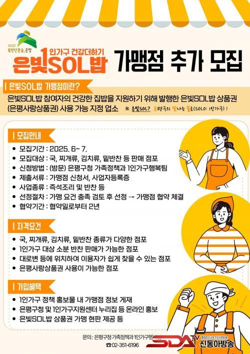 [½Åµ¿¾Æ¹æ¼Û ÀºÆò±¸=À̽ŵ¿±âÀÚ] ¼­¿ï ÀºÆò±¸´Â Àú¼Òµæ ÁßÀå³â 1ÀÎ °¡±¸¸¦ ´ë»óÀ¸·Î °Ç°­ÇÑ ½Ä»ýȰÀ» Áö¿øÇÏ´Â ¡®ÀººûSOL¹ä¡¯ »ç¾÷¿¡ Âü¿©ÇÒ ¹ÝÂù°¡°Ô °¡¸ÍÁ¡À» ¿À´Â 7¿ù 31ÀϱîÁö ¸ðÁýÇÑ´Ù°í ¹àÇû´Ù.