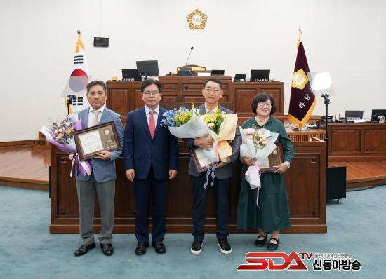 ÇÑÆí, ½ÃÀÇȸ´Â À̳¯ Æò¼Ò ÅõöÇÑ »ç¸í°¨°ú ºÀ»ç Á¤½ÅÀ¸·Î ŸÀÇ ¸ð¹üÀÌ µÇ¸ç, Áö¿ª»çȸ ¹ßÀüÀ» À§ÇØ ±â¿©ÇÑ ÃßÀϼø(Ãá±Ãµ¿ »õ¸¶À»ºÎ³àȸÀå), À念ÅÂ(´ödz2µ¿ Áö¿ª»çȸº¸ÀåÇùÀÇü °í¹®), ±è±¤ÀÎ(¹Ì»ç1µ¿ ÁÖ¹ÎÀÚġȸ À§¿ø), ³ëÀ±ÇÏ(À§·Êµ¿ ¹Ù¸£°Ô»ì±âÀ§¿øÈ¸ À§¿ø) ¾¾¸¦ ¡®2025³â 2ºÐ±â ¸ð¹ü½Ã¹Î»ó¡¯ ¼ö»óÀÚ·Î ¼±Á¤Çß´Ù.
