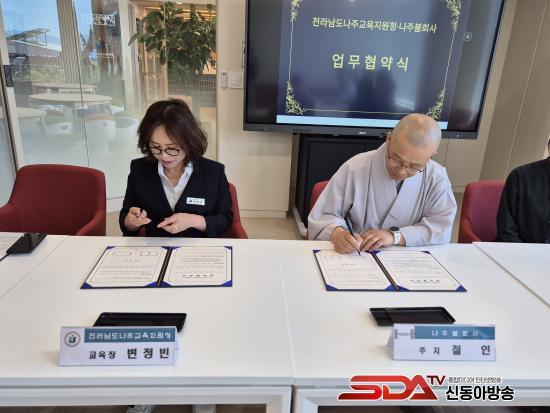 [½Åµ¿¾Æ¹æ¼Û Àü³²³ªÁÖ=À̽ŵ¿±âÀÚ] Àü¶ó³²µµ³ªÁÖ±³À°Áö¿øÃ»Àº 6¿ù 5ÀÏ(¸ñ) ¿ÀÀü 11½Ã, ³ªÁÖºÒȸ»ç¿Í ÇÔ²² ÀüÅë»ê»ç¸¦ ±â¹ÝÀ¸·Î ÇÑ Àμº±³À° ¹× Á¤¼­ ȸº¹ Áö¿øÀ» À§ÇÑ ¾÷¹«Çù¾à(MOU)¸¦ ü°áÇÏ¿´´Ù.