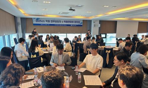 À̹ø ÇùÀÇȸ´Â Çпø ÇàÁ¤ ½Ç¹«ÀÚ¿Í Çпø¿¬ÇÕȸ °£ ¼ÒÅëÀ» °ÈÇϰí, ÇöÀåÀÇ ÀǰßÀ» Á÷Á¢ µè±â À§ÇÑ ÀÚ¸®·Î ¸¶·ÃµÆ´Ù. ÀÌ ÀÚ¸®¿¡´Â µµ³» ±³À°Áö¿øÃ» Çпø¾÷¹« ÆÀÀå ¹× ´ã´çÀÚ 53¸í, Áö¿ª Çпø¿¬ÇÕȸ ºÐȸÀå°ú ÀÓ¿ø 27¸í µî ÃÑ 80¿© ¸íÀÌ Âü¼®Çß´Ù.