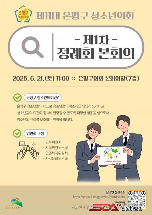 Á¦11´ë ÀºÆò±¸ û¼Ò³âÀÇȸ Á¦1Â÷ Á¤·Êȸ º»È¸ÀÇ´Â Áö¿ª ÁÖ¹ÎÀÇ ÇöÀå Âü°üÀÌ °¡´ÉÇϸç ÀºÆò±¸ÀÇȸ ´©¸®ÁýÀ» ÅëÇØ »ýÁß°èµÉ ¿¹Á¤ÀÌ´Ù.