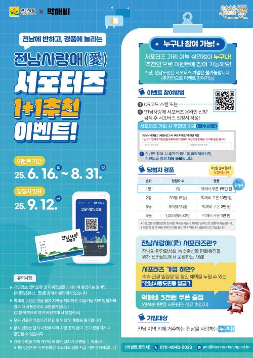 À̺¥Æ®¿¡ ´ëÇÑ ÀÚ¼¼ÇÑ ³»¿ëÀº Àü³² »ç¶û¾Ö ¼Æ÷ÅÍÁî Àü¿ë ´©¸®Áý (https://namdo2.jeonnam.go.kr/jnsupports/)°ú īī¿ÀÅåä³Î, ÀνºÅ¸±×·¥ µî SNS¸¦ ÅëÇØ È®ÀÎÇÒ ¼ö ÀÖ´Ù.
