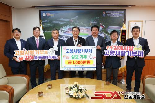 À̹ø »óÈ£±âºÎ ±âʽÄÀº ±èÇØ½Ã¿Í ¹Ð¾ç½ÃÀÇ ³óÇù ÀÓ¡¤Á÷¿øµé(°¢ 100¸í)À» ´ëÇ¥ÇÏ¿© À̰Èñ ±èÇØ½ÃÁöºÎÀå, Á¤Ã¢È£ ´ëµ¿³óÇù Á¶ÇÕÀå, ±ÇÅ¿ø ¹Ð¾ç½ÃÁöºÎÀå, °Á¤È¯ »ó³²³óÇù Á¶ÇÕÀå µî ÁÖ¿ä °ü°èÀÚ°¡ Âü¿©ÇÏ¿© ±èÇØ½Ã¿¡ °íÇâ»ç¶û±âºÎ±Ý 1,000¸¸¿øÀ» 17ÀÏ¿¡ Àü´ÞÇß´Ù.