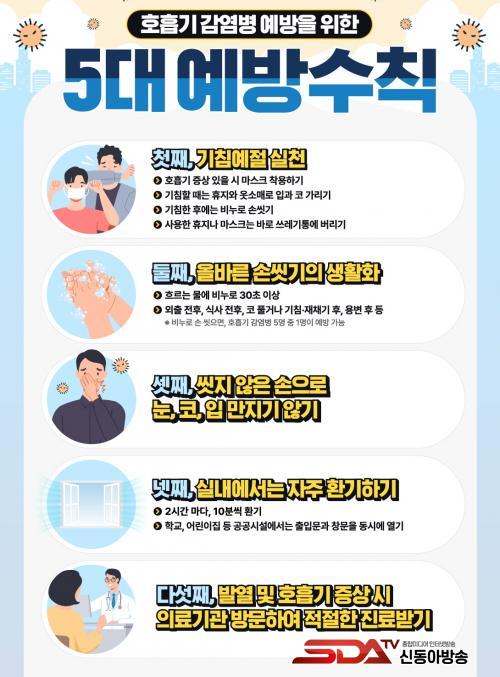 ¿¹¹æ¼öÄ¢À¸·Î´Â ºñ´©¸¦ Ȱ¿ëÇÑ ¿Ã¹Ù¸¥ ¼Õ ¾Ä±â, ±âħ ¿¹Àý Áö۱â, ÀÇ½É Áõ»ó ½Ã ¸¶½ºÅ© Âø¿ë µî ±âº»ÀûÀÎ ¼öÄ¢ ½ÇõÀÌ Áß¿äÇÏ´Ù. ¶ÇÇÑ, ¹ß¿¤ý¹ßÁø¤ýħ»ù ºÎ±â µîÀÇ Áõ»óÀÌ ÀÖÀ¸¸é ÀÇ·á±â°üÀ» Áï½Ã ¹æ¹®Çؼ Áø·á¹Þ¾Æ¾ß Çϸç, Àü¿° °¡´É¼ºÀÌ ÀÖ´Â ±â°£¿¡´Â µî¿ø¤ýµî±³ µî ´ÜüȰµ¿À» ÀÚÁ¦ÇØ¾ß ÇÑ´Ù.