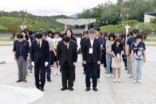 ¸ÕÀú Âü¹è¿¡´Â ÀÌÁ¤¼± ±³À°°¨°ú ±¹»ç·Ã ȸÀå ±èÁ¤±Ù °¿ø´ë»ç´ëºÎ°í ±³Àå µî Àü±¹ ±¹¸³»ç¹ü´ëºÎ¼ÓÁß¡¤°í 21°³±³, 90¿© ¸íÀÇ ±³»çµéÀÌ Âü¿©ÇØ 5¡¤18 Èñ»ýÀÚµéÀÇ ³ÌÀ» ±â¸®°í, 1980³â 5¿ùÀÇ ¼þ°íÇÑ Èñ»ýÀ» ±â·È´Ù.