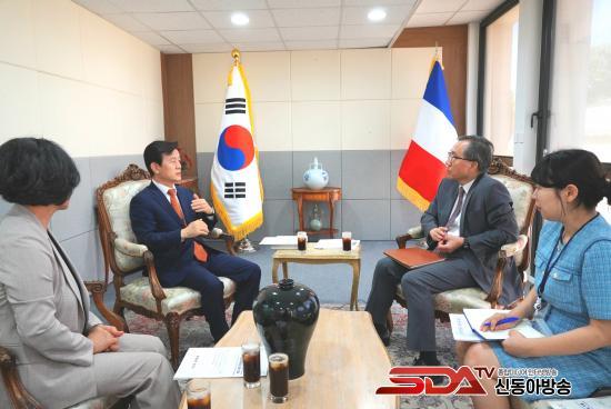 ÀÌ¾î ´ëÇ¥´ÜÀº ¹®½ÂÇö ÁÖÇÁ¶û½º Çѱ¹´ë»ç¸¦ ¸¸³ª ÁøÁÖ½ÃÀÇ ¿ì¼öÇÑ ¹®È»ê¾÷ ÄÜÅÙÃ÷¿Í Ç×°ø »ê¾÷À» ¼Ò°³Çϰí, ÁøÁÖ½Ã¿Í ÇÁ¶û½º °£ ¹®È±³·ù È®´ë ¹× ¿ìÈ£ ÁõÁø ¹æ¾È¿¡ ´ëÇØ ÀǰßÀ» ³ª´³´Ù.Á¶±ÔÀÏ ½ÃÀåÀº ÁøÁÖ½ÇÅ©, ÁøÁÖ³²°À¯µîÃàÁ¦, ÁøÁÖ K-±â¾÷°¡Á¤½ÅÀ» ¼Ò°³Çϰí 2026³â ÇÑºÒ 140Áֳ⠱â³äÇà»ç¿¡ ÁøÁÖ½ÇÅ©µî ÇÁ¶û½º Àü½Ã¿Í ÁøÁÖ½ÃÀÇ ¹Ì·¡ ¸Ô°Å¸® »ç¾÷ÀÎ Ç×°ø »ê¾÷ ºÐ¾ßÀÇ À°¼ºÀ» À§ÇØ ´ë»ç°üÀÇ Àû±ØÀûÀÎ ÇùÁ¶¿Í Áö¿øÀ» ¿äûÇß´Ù.