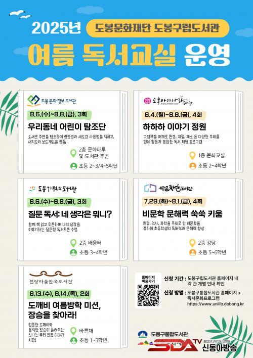 µµ¼°üº°·Î ÇÁ·Î±×·¥À» ¿î¿µÇÏ¸ç ¼¼ºÎÇÁ·Î±×·¥Àº µµºÀ¹®ÈÁ¤º¸µµ¼°ü ¡®¿ì¸®µ¿³× ¾î¸°ÀÌ Å½Á¶´Ü¡¯(8.6.~8.8.), µµºÀ¾ÆÀ̳ª¶óµµ¼°ü ¡®ÇÏÇÏÇÏ À̾߱â Á¤¿ø¡¯(8.4.~8.8.), µµºÀ±âÀûÀǵµ¼°ü ¡®Áú¹® µ¶¼: ³× »ý°¢Àº ¹¹´Ï?¡¯(8.6.~8.8.), ½Ö¹®Ã¤¿òµµ¼°ü ¡®ºñ¹®ÇÐ ¹®ÇØ·Â ¾¦¾¦ Ű¿ò¡¯(7.29.~8.1.), ¿ø´ç¸¶À»ÇÑ¿Áµµ¼°ü ¡®µµ±úºñ ¿©¸§¹æÇÐ ¹Ì¼Ç, Àå½ÂÀ» ã¾Æ¶ó!¡¯(8.13.~8.14.)ÀÌ´Ù.