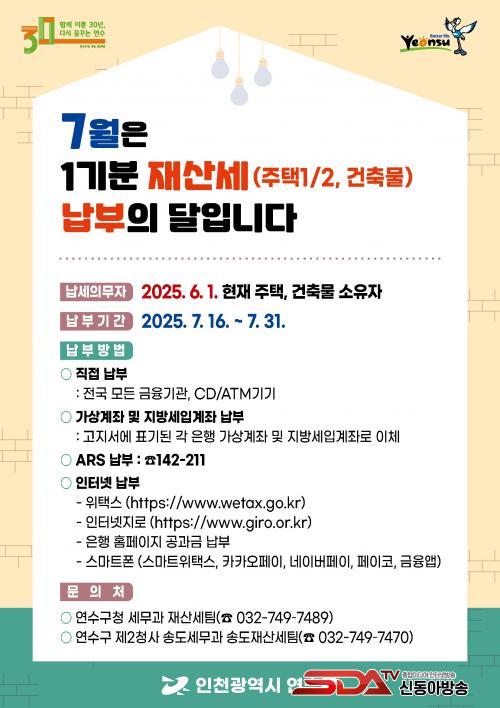 Àç»ê¼¼ °ü·Ã ÀÚ¼¼ÇÑ »çÇ×Àº ¿¬¼ö±¸ ¼¼¹«°ú Àç»ê¼¼ÆÀ(¢Ï032-749-7489)À¸·Î ¹®ÀÇÇÏ¸é µÇ¸ç, ƯÈ÷ ¿ÃÇØºÎÅÍ ¼Ûµµµ¿¿¡ ºÎ°úµÈ Àç»ê¼¼´Â ¼Ûµµ¼¼¹«°ú ¼ÛµµÀç»ê¼¼ÆÀ(¢Ï032-749-7470)À¸·Î ¹®ÀÇÇÏ¸é µÈ´Ù.