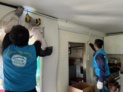 ¹«´õ¿î ³¯¾¾ ¼Ó ¿­¾ÇÇÑ È¯°æ¿¡¼­ °ÅÁÖÇϴ Ȧ¸ö ¾î¸£½ÅÀ» ´ë»óÀ¸·Î º¹Áö±âµ¿´ë¿øµéÀº ³°Àº ½ÌÅ©´ë¸¦ ö°ÅÇϰí, ³ëÈÄ º®Áö¸¦ ±³Ã¼ÇÏ´Â µî ÄèÀûÇÏ°í ¾ÈÀüÇÑ °ø°£À¸·Î ¹Ù²Ù´Â µ¥ ±¸½½¶¡À» Èê·È´Ù.
