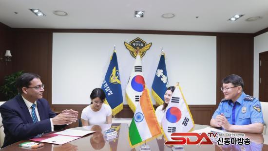 7¿ù 11ÀÏ ÁÖÇÑ Àεµ ´ë»ç°ü¿¡¼ ¾Æ¹Ô Äí¸¶¸£ ´ë»ç°¡ ÇØ¾ç°æÂûûÀ» ¹æ¹®ÇÏ¿© ±è¿ëÁø ÇØ¾ç°æÂûûÀå°ú ÇÔ²² ¾ç±¹ ÇØ¾ç Çù·Â ¹æ¾È ³íÀÇ ÇÏ´Â ¶æ ±íÀº ÀÚ¸®¸¦ ¸¶·ÃÇÏ¿´´Ù.