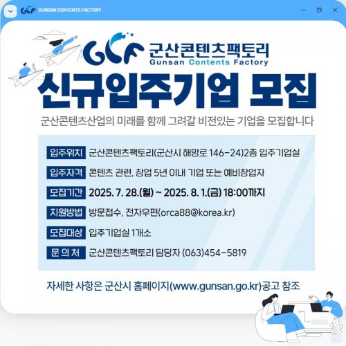 ÀÔÁÖ¸¦ ¿øÇÏ´Â ±â¾÷Àº ±º»ê½Ã ´©¸®Áý °í½Ã°ø°í ¶Ç´Â ±º»êÄÜÅÙÃ÷ÆÑÅ丮 ´©¸®Áý°øÁö»çÇ׿¡ °Ô½ÃµÈ ÀÔÁÖ½Åû¼¸¦ ÀÛ¼ºÇÑ ÈÄ ÄÜÅÙÃ÷ÆÑÅ丮(ÇØ¸Á·Î146-24) 3Ãþ ¿î¿µÁö¿ø½Ç·Î ¹æ¹®Çϰųª, ÀüÀÚ¿ìÆí(orca88@korea.kr)À¸·Î Á¢¼öÇÏ¸é µÈ´Ù.