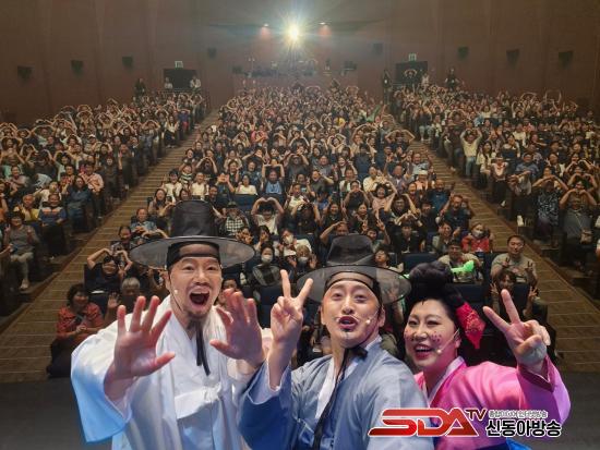 À̳¯ °ø¿¬¿¡´Â °ü°´ÀÌ °ø¿¬ÀåÀ» °¡µæ ¸Þ¿î °¡¿îµ¥, °ø¿¬ ³»³» ¿ôÀ½°ú ¹Ú¼ö°¥Ã¤°¡ ²÷ÀÌÁö ¾Ê¾Ò´Ù. °ü°´µéÀº ±Ø Áß »ðÀÔµÈ º¸À̽ºÇǽÌ, ¿Ü¸ðÁö»óÁÖÀÇ, ÀúÃâ»ê ¹®Á¦ µî Çö´ë »çȸ dzÀÚ ¿ä¼Ò¿¡ Å« °ø°¨°ú ¿ôÀ½À» º¸³Â°í, ½ÉûÀüÀ̶ó´Â Àͼ÷ÇÑ À̾߱⸦ Çö´ëÀûÀ¸·Î ÀçÇØ¼®ÇÑ ±¸¼º¿¡ È£ÆòÀ» ¾Æ³¢Áö ¾Ê¾Ò´Ù.