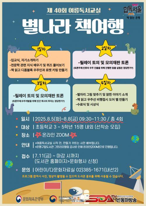 À̹ø µ¶¼±³½ÇÀº ±¹¸³¾î¸°ÀÌû¼Ò³âµµ¼°üÀÌ ÁÖ°üÇϰí Áö¿ª °ø°øµµ¼°üÀÌ ÇÔ²²ÇÏ´Â ¿©¸§¹æÇÐ µ¶¼ ÇÁ·Î±×·¥À¸·Î ¾î¸°À̵éÀÌ Ã¥À» ÅëÇØ ¿ìÁÖ¸¦ ŽÇèÇϸç âÀǷ°ú »ç°í·ÂÀ» Ű¿ï ¼ö ÀÖµµ·Ï ±âȹµÆ´Ù.