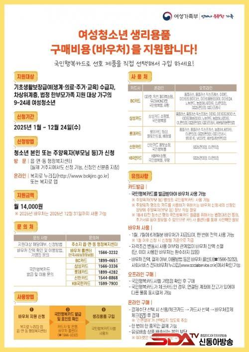 À̹ø »ç¾÷Àº ¿©¼º°¡Á·ºÎ ÁÖ°ü ±¹ºñ Áö¿ø»ç¾÷À¸·Î, ¿©¼ºÃ»¼Ò³âÀÇ °Ç°ÇÑ ¼ºÀå°ú ±âº» °Ç°±Ç º¸ÀåÀ» ¸ñÀûÀ¸·Î ÃßÁøµÈ´Ù.