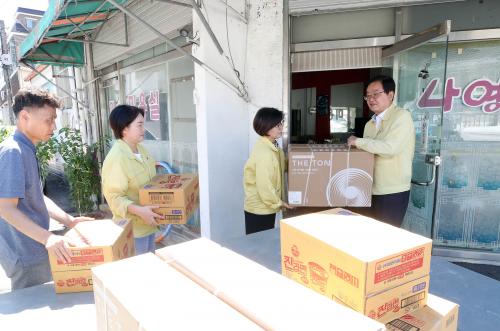 ±âŹ½Ä ÈÄ ¹®ÀÎ ºÏ±¸Ã»ÀåÀº ½Å¾Èµ¿°ú °Ç±¹µ¿ ÀÏ´ë ¼öÇØ °¡±¸¸¦ Á÷Á¢ ã¾Æ ÀÇ¿¬¹°Ç°À» Àü´ÞÇϰí, ÇÇÇØ ÁֹεéÀ» À§·ÎÇϸç Á¶¼ÓÇÑ º¹±¸¸¦ ¾à¼ÓÇß´Ù.