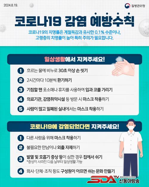 ½Ã´Â °¨¿°º´ È®»êÀ» ¸·±â À§ÇØ ¼Õ ¾Ä±â, ±âħ ¿¹Àý, »ç¶÷ ¸¹Àº °÷¿¡¼ ¸¶½ºÅ© Âø¿ë µî ±âº»ÀûÀΠȣÈí±â °¨¿°º´ ¿¹¹æ¼öÄ¢À» öÀúÈ÷ ÁؼöÇÏ´Â °ÍÀÌ Áß¿äÇÏ´Ù°í ´çºÎÇß´Ù. ±âħ°ú ¹ß¿ µî Äڷγª19 ÀÇ½É Áõ»óÀÌ ÀÖÀ¸¸é °¡±î¿î ÀÇ·á±â°üÀ» ¹æ¹®ÇØ ÀûÀýÇÑ Ã³¹æÀ» ¹Þ¾Æ¾ß ÇÑ´Ù. ¶ÇÇÑ, ÇØ¿Ü¿©Çà Áß ÀÇ½É Áõ»óÀÌ ÀÖ´Â °æ¿ì¿¡´Â ÀÔ±¹ ½Ã ¹Ýµå½Ã °Ë¿ª°ü¿¡°Ô À̸¦ ¾Ë·Á¾ß ÇÑ´Ù.