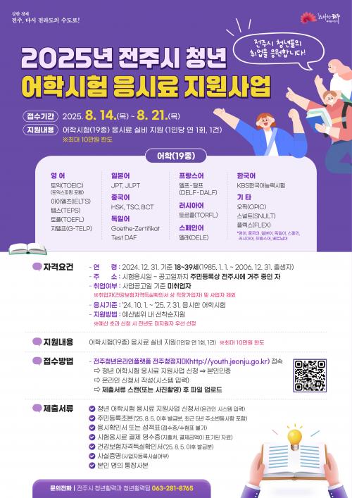 [½Åµ¿¾Æ¹æ¼Û=ÀüÀº¼÷±âÀÚ] ÀüÁֽô ¹ÌÃë¾÷ û³âÀÇ °æÀï·Â °­È­¸¦ µ½°í °æÁ¦Àû ºÎ´ãÀ» ´ú±â À§ÇØ ¡®2025 û³â¾îÇнÃÇè ÀÀ½Ã·á Áö¿ø»ç¾÷¡¯À» ¿À´Â 8¿ù 14ÀϺÎÅÍ 21ÀϱîÁö ½ÃÇàÇÑ´Ù°í 1ÀÏ ¹àÇû´Ù.