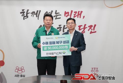 ¼º±ÝÀ» Àü´ÞÇÑ Çѱ¹ÅäÁö½ÅŹ °ü°èÀÚ´Â ¡°¼öÇØ·Î Å« °íÅëÀ» °Þ°í ÀÖ´Â ½Ã¹ÎµéÀÌ ÇϷ绡¸® ¾ÈÁ¤À» µÇã°í ÀÏ»óÀ¸·Î º¹±ÍÇÏ½Ã±æ ¹Ù¶ó´Â ¸¶À½À¸·Î ¼º±ÝÀ» ¸¶·ÃÇß´Ù¡±¸ç ¡°¾ÕÀ¸·Îµµ ´Ù¾çÇÑ »çȸ°øÇåȰµ¿À» ÅëÇØ Áö¿ª°ú ÇÔ²² ¼ºÀåÇÏ´Â ±â¾÷ÀÌ µÇ°Ú´Ù¡±°í ÀüÇß´Ù.