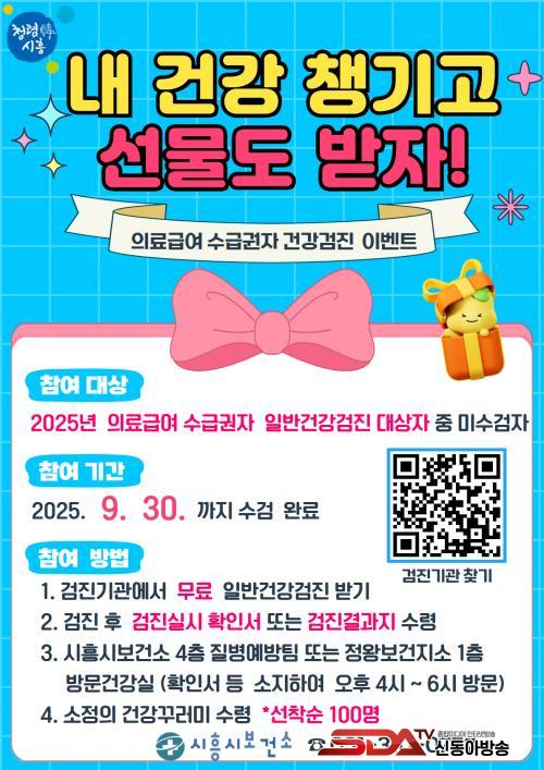 ¶ÇÇÑ ½Ã´Â ÀÇ·á¼ö±Þ±ÇÀÚÀÇ °Ç°°ËÁø Âü¿©¸¦ µ¶·ÁÇϱâ À§ÇØ ¿À´Â 9¿ù ¸»±îÁö °ËÁø ÈÄ °á°úÁö¸¦ Á¦ÃâÇÏ¸é ¼±Âø¼ø 100¸í¿¡°Ô °Ç°²Ù·¯¹Ì¸¦ Á¦°øÇÒ °èȹÀÌ´Ù.
