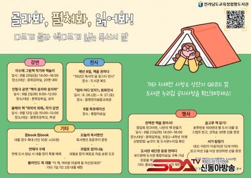 [½Åµ¿¾Æ¹æ¼Û Àü³²ÇÔÆò=À̽ŵ¿±âÀÚ] Àü¶ó³²µµ±³À°Ã»ÇÔÆòµµ¼­°üÀº 9¿ù ÇÑ ´Þ µ¿¾È µ¶¼­ÀÇ ´ÞÀ» ¸Â¾Æ »õ·Ó°Ô ´ÜÀåÇÑ ÅëÇÕÀÚ·á½Ç¿¡¼­ ´Ùä·Î¿î µ¶¼­¹®È­ Çà»ç¸¦ ¿î¿µÇÑ´Ù. ¡°°ñ¶óºÁ, ÆîÃĺÁ, ÀоîºÁ!¡±¶ó´Â ÁÖÁ¦·Î ÆîÃÄÁö´Â À̹ø µ¶¼­ÀÇ ´ÞÀº Áö¿ª Áֹΰú ÇлýµéÀÌ Æò¼Ò Á¢ÇÏÁö ¾Ê¾Ò´ø ´Ù¾çÇÑ Ã¥À» ¸¸³ª°í, µµ¼­°üÀ» ´õ¿í Ä£±ÙÇÏ°Ô ´À³¥ ¼ö ÀÖµµ·Ï ¸¶·ÃÇß´Ù.