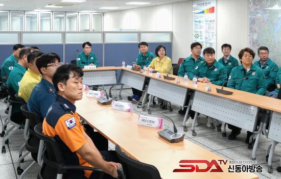 Çϳ²½ÃÀÇȸ ±Ý±¤¿¬ ÀÇÀå, Á¤º´¿ë ºÎÀÇÀå°ú ÀÇ¿øµéÀÌ 8¿ù 19ÀÏ ¿ÀÈÄ 3½Ã ¡®2025³â À»Áö¿¬½À¡¯ ÈÆ·ÃÀÌ ÁøÇà ÁßÀÎ Çϳ²½Ãû º»°ü ÁöÇÏ 1Ãþ Àü½ÃÁ¾ÇÕ»óȲ½ÇÀ» ¹æ¹®ÇØ ±Ù¹« ÁßÀÎ °ø¹«¿ø°ú °ü°èÀÚµéÀ» °Ý·ÁÇß´Ù. (»çÁø_Çϳ²½ÃÀÇȸ Á¦°ø)