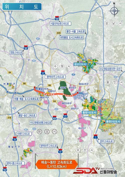 ¡®¸Å¼Û~µ¿Åº °í¼ÓÈ­µµ·Î¡¯´Â È­¼º½Ã ¸Å¼Û¸é ¿øÆò¸®(ºñºÀ¸Å¼Û°£ µµ·Î, »ù³»IC)¿¡¼­ ¹ÝÁ¤µ¿(µ¿Åº¿øÃµ·Î)À» ¿¬°áÇÏ´Â ±æÀÌ ¾à 10.63kmÀÇ ¿Õº¹ 4Â÷·Î °í¼ÓÈ­µµ·Î´Ù. ÃÑ»ç¾÷ºñ´Â 6,891¾ï ¿ø(2020.01. ºÒº¯°¡)À̸ç, ¼ÕÀͰøÀ¯Çü(BTO-a) ¹æ½Ä(60°³¿ù °ø»ç, 50³â°£ ¿î¿µ)À¸·Î Á¦¾ÈµÆ´Ù.