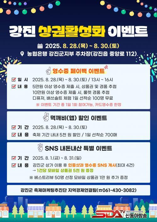 À̹ø À̺¥Æ®´Â »ó°¡ ¹æ¹®°´ ¹× ¼Òºñ ÃËÁøÀ» À¯µµÇØ °­ÁøÀ¾ °ñ¸ñ»ó±ÇÀÇ È°·ÂÀ» ºÒ¾î³Ö±â À§ÇØ ÁøÇàµÇ¸ç, ÁÖ¿ä À̺¥Æ®·Î´Â °­Áø»ç¶û»óǰ±Ç ¿µ¼öÁõ ÆäÀ̹é À̺¥Æ®, ¹«·á üÇè ÇÁ·Î±×·¥, ²Î ¾ø´Â µ¹¸²ÆÇ À̺¥Æ®, ¡®°­Áø¸À±úºñ¡¯ ¸Ô±úºñ ÇÒÀÎ À̺¥Æ®, SNS ³»µ·³»»ê Ưº° À̺¥Æ® µîÀÌ ÀÖ´Ù.