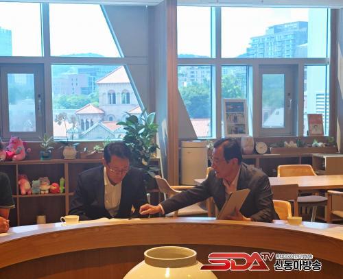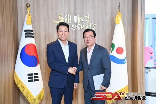 22ÀÏ ÀÌÇöÀç Çϳ²½ÃÀå(¿À¸¥ÂÊ)°ú ¿À¼¼ÈÆ ¼­¿ï½ÃÀå(¿ÞÂÊ)ÀÌ À§·Ê½Å»ç¼± Çϳ²¿¬Àå µî ±³ÅëÇö¾È ³íÀǸ¦ À§ÇØ ¸¸³ª ÀǰßÀ» ³ª´« µÚ ±â³äÃÔ¿µÀ» Çϰí ÀÖ´Ù.