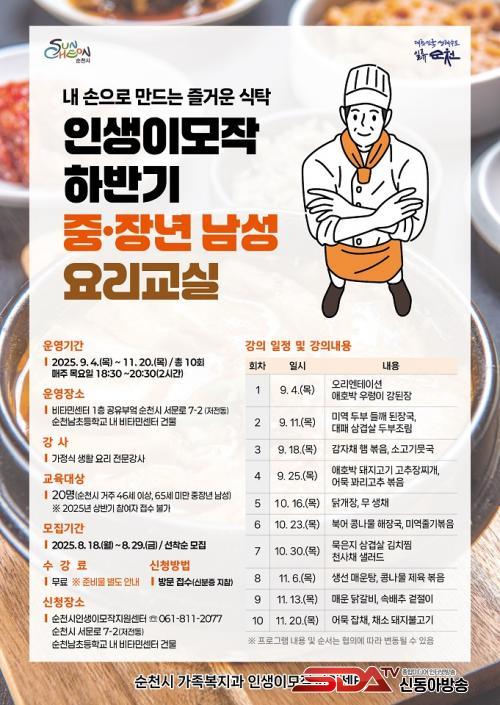 [½Åµ¿¾Æ¹æ¼Û ¼øÃµ=±è¿ëÈÆ ±âÀÚ] ¼øÃµ½Ã(½ÃÀå ³ë°ü±Ô)´Â ¿À´Â 9¿ù 4ÀϺÎÅÍ 11¿ù 20ÀϱîÁö 3°³¿ù°£ ¼øÃµ½Ã °ÅÁÖ Áß¡¤Àå³â ³²¼º(46¼¼ ÀÌ»ó 65¼¼ ¹Ì¸¸) 20¸íÀ» ´ë»óÀ¸·Î ¸ÅÁÖ ¸ñ¿äÀÏ Àú³á 18:30ºÎÅÍ 20:30±îÁö 1ȸ 2½Ã°£, 10ȸ±â °úÁ¤À¸·Î ³²¼º ¿ä¸® ±³½ÇÀ» ¿î¿µÇÑ´Ù.