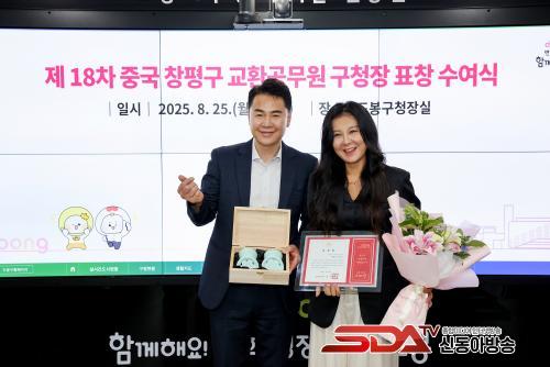 ¿À¾ð¼® µµºÀ±¸Ã»Àå(¿ÞÂÊ)°ú ¿ÕÈ¿½Å Áß±¹ âÆò±¸ ±³È¯°ø¹«¿ø(¿À¸¥ÂÊ)ÀÌ ÇÔ²² »çÁøÀ» Âï°í ÀÖ´Ù(2025. 8. 25. µµºÀ±¸Ã» ±¸Ã»Àå½Ç)