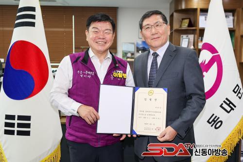ÀÌÇÊÇü µ¿´ë¹®±¸Ã»Àå(»çÁø ¿ÞÂÊ)°ú ¹ÚÈñ¼ö µ¿´ë¹®±¸½Ã¼³°ü¸®°ø´Ü ÀÌ»çÀåÀÌ ±â³äÃÔ¿µÀ» Çϰí ÀÖ´Ù.