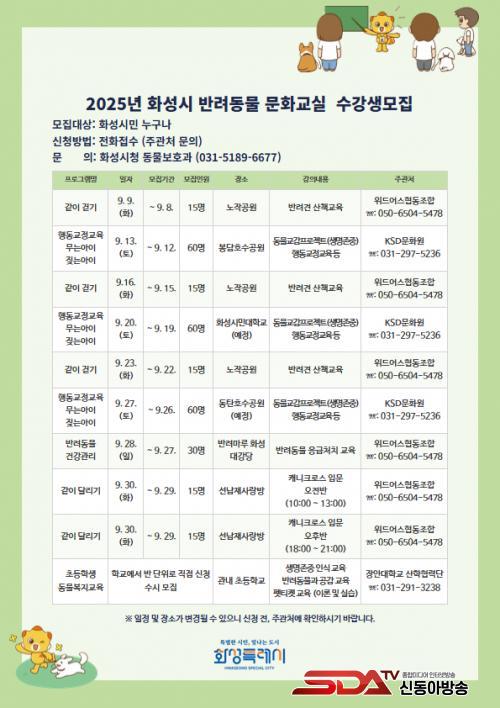 [½Åµ¿¾Æ¹æ¼Û=ÀÌÀçö±âÀÚ] È­¼ºÆ¯·Ê½Ã(½ÃÀå Á¤¸í±Ù)°¡ °Ç°­ÇÏ°í ¼º¼÷ÇÑ ¹Ý·Á ¹®È­¸¦ Á¤ÂøÇϱâ À§ÇÑ ¡®2025³â ¹Ý·Áµ¿¹° ¹®È­±³½Ç¡¯ ¼ö°­»ýÀ» ¸ðÁýÇÑ´Ù°í 4ÀÏ ¹àÇû´Ù.