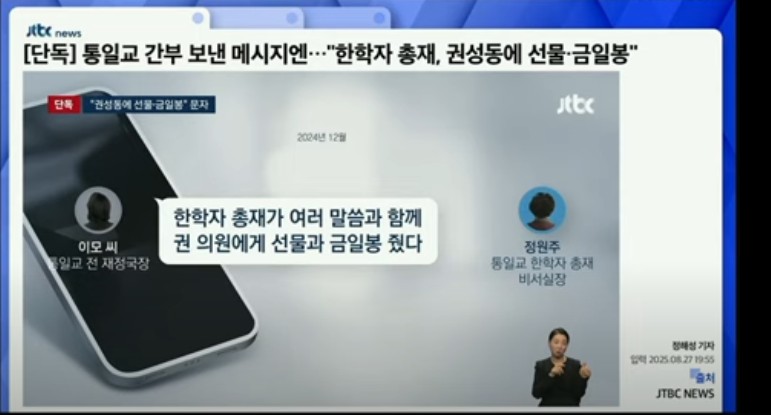 ÅëÀϱ³ ÀçÁ¤À» ´ã´çÇÏ´Â ÀÚ°¡ º¸³½ ³»ºÎ ¹®ÀÚ. ÇÑÇÐÀÚ ÃÑÀç°¡ ±Ç¼ºµ¿¿¡°Ô ±ÝÀϺÀÀ» ÀüÇß´Ù°í ÇÑ´Ù. jtbc ´º½º°øÀå