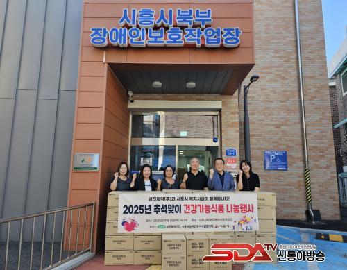 [½Åµ¿¾Æ¹æ¼Û ½ÃÈï½Ã=À̽ŵ¿±âÀÚ] »ïÁøÁ¦¾à(ÁÖ)ÀÌ ½ÃÈï½Ã Àå¾ÖÀεéÀ» À§ÇÑ µû¶æÇÑ Ãß¼®¸ÂÀÌ ³ª´®À» ½ÇõÇß´Ù. À̹ø ÈÄ¿ø ¹°Ç°Àº 4,200¸¸¿ø »ó´çÀÇ °Ç°­±â´É½ÄǰÀ¸·Î ½ÃÈï½Ã Àå¾ÖÀεéÀÇ °Ç°­ÇÑ »îÀ» ÀÀ¿øÇϱâ À§ÇØ ½ÃÈï½ÃÀå¾ÖÀκ¹Áö½Ã¼³ÇùÀÇȸ¿¡ Áö³­ 4ÀÏ Àü´ÞµÆ´Ù.