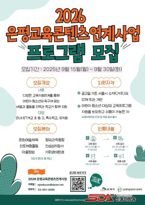 [½Åµ¿¾Æ¹æ¼Û ÀºÆò±¸=À̽ŵ¿±âÀÚ] ¼­¿ï ÀºÆò±¸´Â ¿À´Â 30ÀϱîÁö ¡®2026³â ÀºÆò±³À°ÄÜÅÙÃ÷ ¿¬°è»ç¾÷¡¯ ÇÁ·Î±×·¥À» ¸ðÁýÇÑ´Ù°í ¹àÇû´Ù.