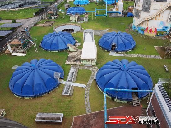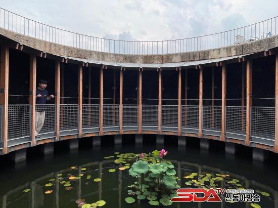 Áö³­ÇØ 6¿ù ¿Ï°øµÈ ¡®Àֱ⿡-¾Õ¼­¡¯´Â ¿ÀÆó¼ö 󸮰úÁ¤¿¡¼­ ¹ß»ýÇÑ Ä§Àü¹°À» ³óÃàÇÏ´Â ³óÃàÁ¶ 5°³ µ¿°ú À̸¦ ¿¬°á¤ýÁß°³ÇÏ´Â ºÐ¹èÁ¶¸¦ Àç»ýÇØ ¸¸µç º¹ÇÕ¹®È­°ø°£ÀÌ´Ù. ÄÜÅ©¸®Æ®, ¾ÆÅ©¸±, ¸ñÀç, ±Ý¼Ó, ¼®Àç µî Àͼ÷ÇÑ ¼ÒÀç·Î °³¹æ°ú ¿¬°á, ºû°ú ¹°ÀÇ ¿ä¼Ò¸¦ ÀçÇØ¼®ÇÑ ÀÌ °ø°£Àº ¿µÈ­¤ý¾ÆÆ®Çʸ§ ÃÔ¿µ, Àü½Ã, °ø¿¬ µî ´Ù¾çÇÑ ÇÁ·Î±×·¥ÀÌ ¿î¿µµÇ´Â ¡®¹®È­ ¼øÈ¯¼Ò¡¯·Î Ȱ¿ëµÇ°í ÀÖ´Ù.