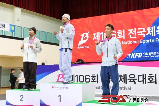 1À§ ±èÈ«¿­ ¼±¼ö, 3À§ ¿ÀöÁ¦ ¼±¼ö°¡ ´Ü»ó¿¡¼­ »çÁøÀ» Âï°í ÀÖ´Ù(2025. 10. 17. ºÎ»ê±¤¿ª½Ã ÇØ¿î´ë±³À°Áö¿øÃ» ½ºÆ÷Ã÷±³À°¼¾ÅÍ)