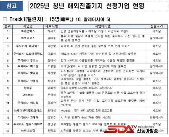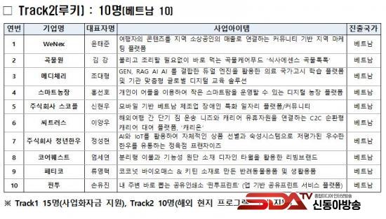 ¿ÃÇØ´Â ±â¾÷ÀÇ ¼ºÀå ´Ü°èº°·Î Track1(縰Àú) 15°³ »ç¿Í Track2(·çŰ) 10°³ »ç µî ÃÑ 25°³ ±â¾÷ÀÌ ¼±¹ßµÆÀ¸¸ç ÀÌ Áß 5°³ ±â¾÷Àº ¸»·¹À̽þÆ, 20°³ ±â¾÷Àº º£Æ®³² ½ÃÀå °ø·«¿¡ ³ª¼±´Ù.