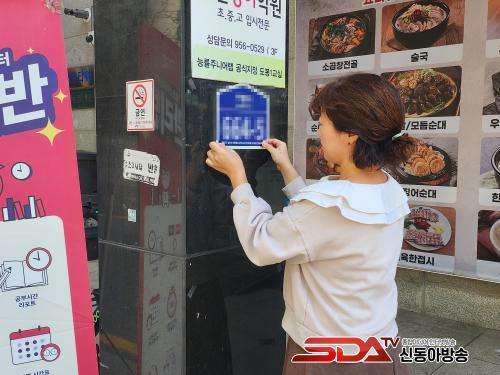 µµºÀ±¸ Á÷¿øÀÌ µµ·Î¸íÁÖ¼ÒÇ¥ÁöÆÇ¿¡ Å¥½Ì»ç±â ¹æÁö ¾È³» ¹®±¸ ½ºÆ¼Ä¿¸¦ ºÎŹÇϰí ÀÖ´Ù.