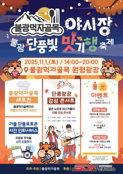À̹ø Çà»ç´Â ¼­¿ï½Ã ¡®2025³â ÀüÅë½ÃÀå ¾ß°£ ¹× À½½Ä¹®È­ Ȱ¼ºÈ­ Áö¿ø»ç¾÷¡¯À¸·Î ¼±Á¤µÅ ºÏÇÑ»ê ´ÜdzÀÌ ÀýÁ¤¿¡ À̸£´Â °¡À» Á¤Ãë ¼Ó¿¡¼­ ¿­¸°´Ù. ºÏÇÑ»ê µî»ê°´°ú Àα٠ÁֹΠ´©±¸³ª ¹«·á·Î Âü¿©ÇÒ ¼ö ÀÖÀ¸¸ç, »óÁ¡°¡°¡ ÁÖµµÇØ ÁÖ¹ÎÀÌ ÇÔ²² Áñ±â´Â ¡®Âü¿©Çü °ñ¸ñÃàÁ¦¡¯·Î ²Ù¸çÁø´Ù.