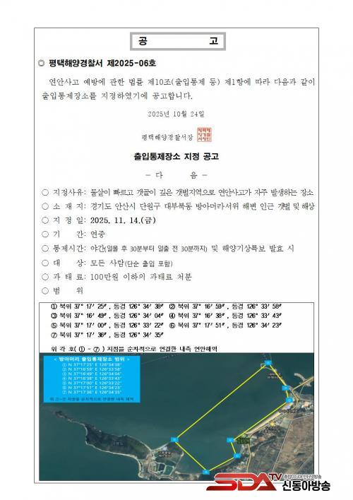 »çÁø=ÆòÅÃÇØ¾ç°æÂû¼­ Á¦2025-06È£(¹æ¾Æ¸Ó¸®Çغ¯ ÃâÀÔÅëÁ¦Àå¼Ò ÁöÁ¤ °ø°í)001