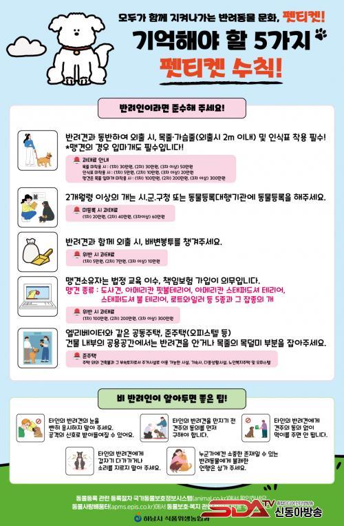 È«º¸¹°¿¡´Â ¡ã¿ÜÃ⠽à ¸ñÁÙ¡¤°¡½¿ÁÙ(2m À̳») ¹× ÀνÄÇ¥ Âø¿ë ¡ã2°³¿ù·É ÀÌ»ó ¹Ý·Á°ßÀÇ µ¿¹°µî·Ï ¡ã¹èº¯ ºÀÅõ ÁöÂü ¡ã¸Í°ß ¼ÒÀ¯ÀÚÀÇ ¹ýÁ¤ ±³À° À̼ö ¡ã¿¤¸®º£ÀÌÅÍ ³» ¹Ý·Áµ¿¹° ¾È±â µî '±â¾ïÇØ¾ß ÇÒ 5°¡Áö ÆêƼÄÏ'ÀÌ ´ã°å´Ù. ºñ¹Ý·ÁÀÎÀ» À§Çؼ­µµ ŸÀÎÀÇ ¹Ý·Á°ßÀ» ÀÀ½ÃÇϰųª µ¿ÀÇ ¾øÀÌ ¸¸ÁöÁö ¾Ê±â µîÀÇ ¿¡Æ¼ÄÏÀ» ÇÔ²² ¾È³»ÇØ ÁֹΠ°£ °¥µî ¿¹¹æ¿¡ Èû¾²°í ÀÖ´Ù.