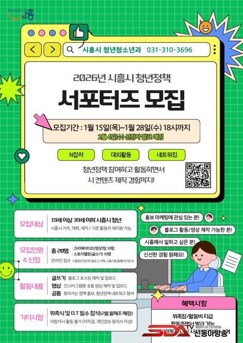 [½Åµ¿¾Æ¹æ¼Û ½ÃÈï½Ã=À̽ŵ¿±âÀÚ] ½ÃÈï½Ã´Â û³âÀÇ ´«³ôÀÌ¿¡¼­ Á¤Ã¥ Á¤º¸¸¦ Àü´ÞÇϰí ÇöÀåÀÇ ¸ñ¼Ò¸®¸¦ ½ÃÁ¤¿¡ ¹Ý¿µÇϱâ À§ÇØ ¡®2026³â ½ÃÈï½Ã û³âÁ¤Ã¥ ¼­Æ÷ÅÍÁ¸¦ 1¿ù 15ÀϺÎÅÍ 28ÀϱîÁö ¸ðÁýÇÑ´Ù.