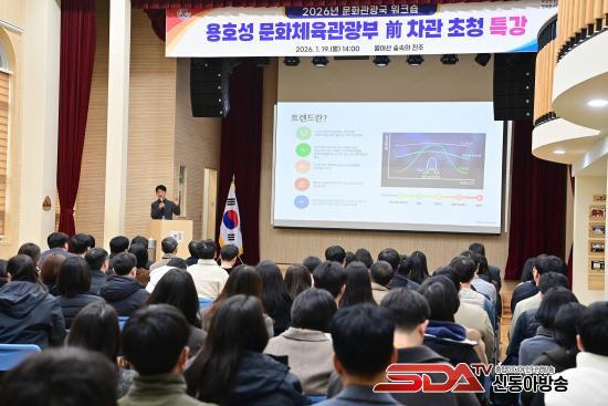 Á¶±ÔÀÏ ½ÃÀåÀº ¡°¹®È­°ü±¤Àº ÁøÁÖ½ÃÀÇ µµ½Ã ºê·£µå¿Í ¹Ì·¡ °æÀï·ÂÀ» Á¿ìÇÏ´Â ÇÙ½É ºÐ¾ßÀ̹ǷÎ, ¿À´Ã Ư°­°ú ¿öÅ©¼óÀÌ Á÷¿ø ¿©·¯ºÐµéÀÌ ¹®È­°ü±¤ Á¤Ã¥À» ´õ¿í Æø³Ð°Ô ÀÌÇØÇϰí, ½Ç¹«¿¡ Àû¿ëÇÒ ¼ö ÀÖ´Â ¼ÒÁßÇÑ ½Ã°£ÀÌ µÇ±â¸¦ ¹Ù¶õ´Ù¡±¶ó¸é¼­ ¡°ÇöÀå¿¡¼­ °í¹ÎÇϰí Åä·ÐÇÑ ³»¿ëµéÀÌ 2026³â ÁÖ¿ä ¾÷¹«¿Í Á¤Ã¥ ÃßÁø¿¡ Àû±Ø ¹Ý¿µµÉ ¼ö Àֱ⸦ ±â´ëÇÑ´Ù¡±¶ó°í ¸»Çß´Ù.
