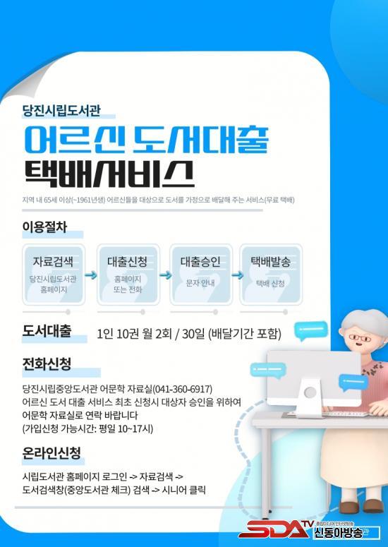 ¡®¾î¸£½Å µµ¼ ´ëÃâ ÅÃ¹è ¼ºñ½º¡¯´Â 65¼¼ ÀÌ»ó ¾î¸£½ÅÀ» ´ë»óÀ¸·Î, µµ¼°ü ´©¸®ÁýÀ» ÅëÇÑ ¿Â¶óÀÎ ½ÅûÀº ¹°·Ð ÀüÈ(¢Ï041-360-6917)·Îµµ °£ÆíÇÏ°Ô µµ¼¸¦ ½ÅûÇÒ ¼ö ÀÖ¾î °í·ÉÃþÀÇ ÀÌ¿ë ÆíÀǸ¦ ³ô¿´´Ù.